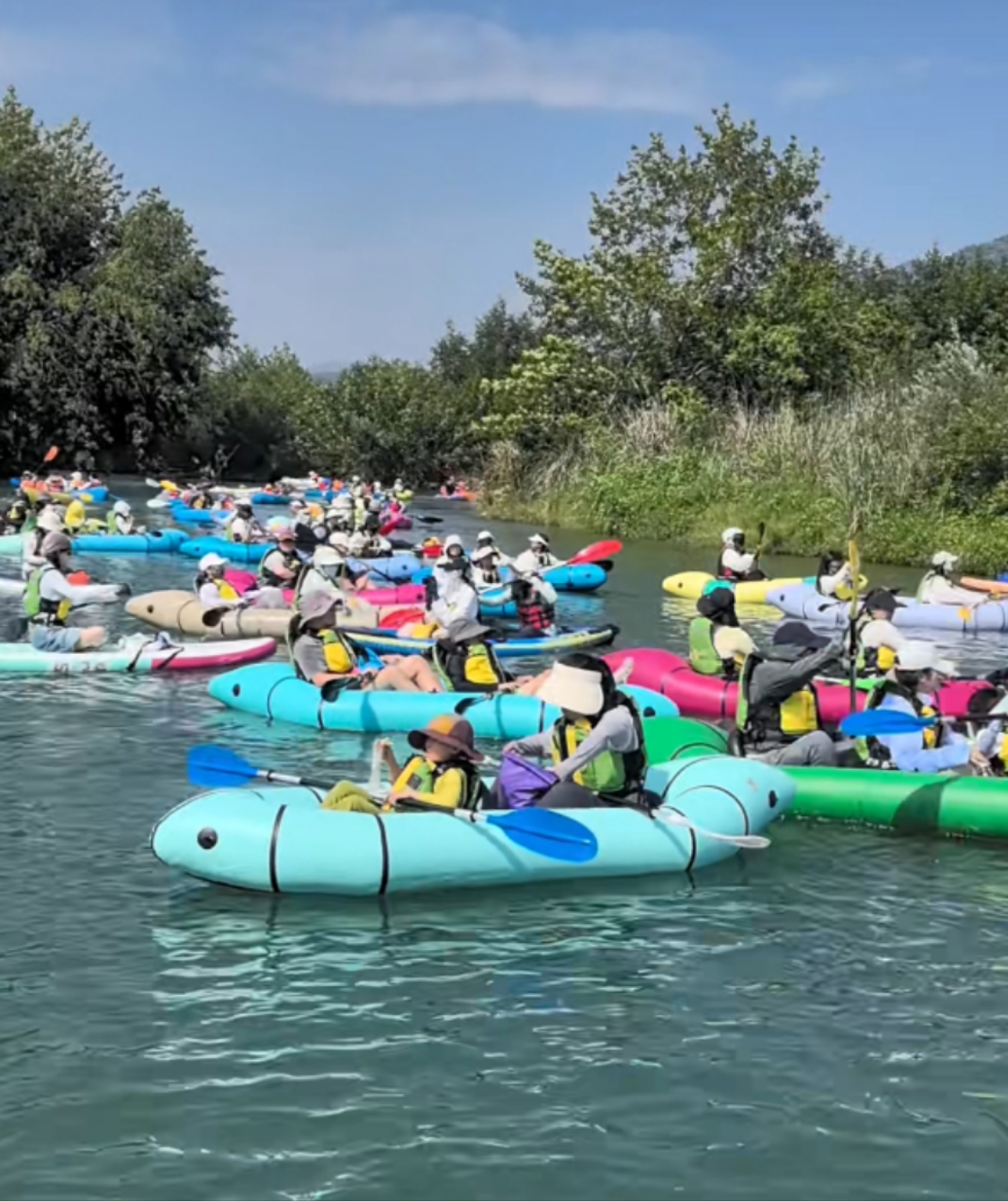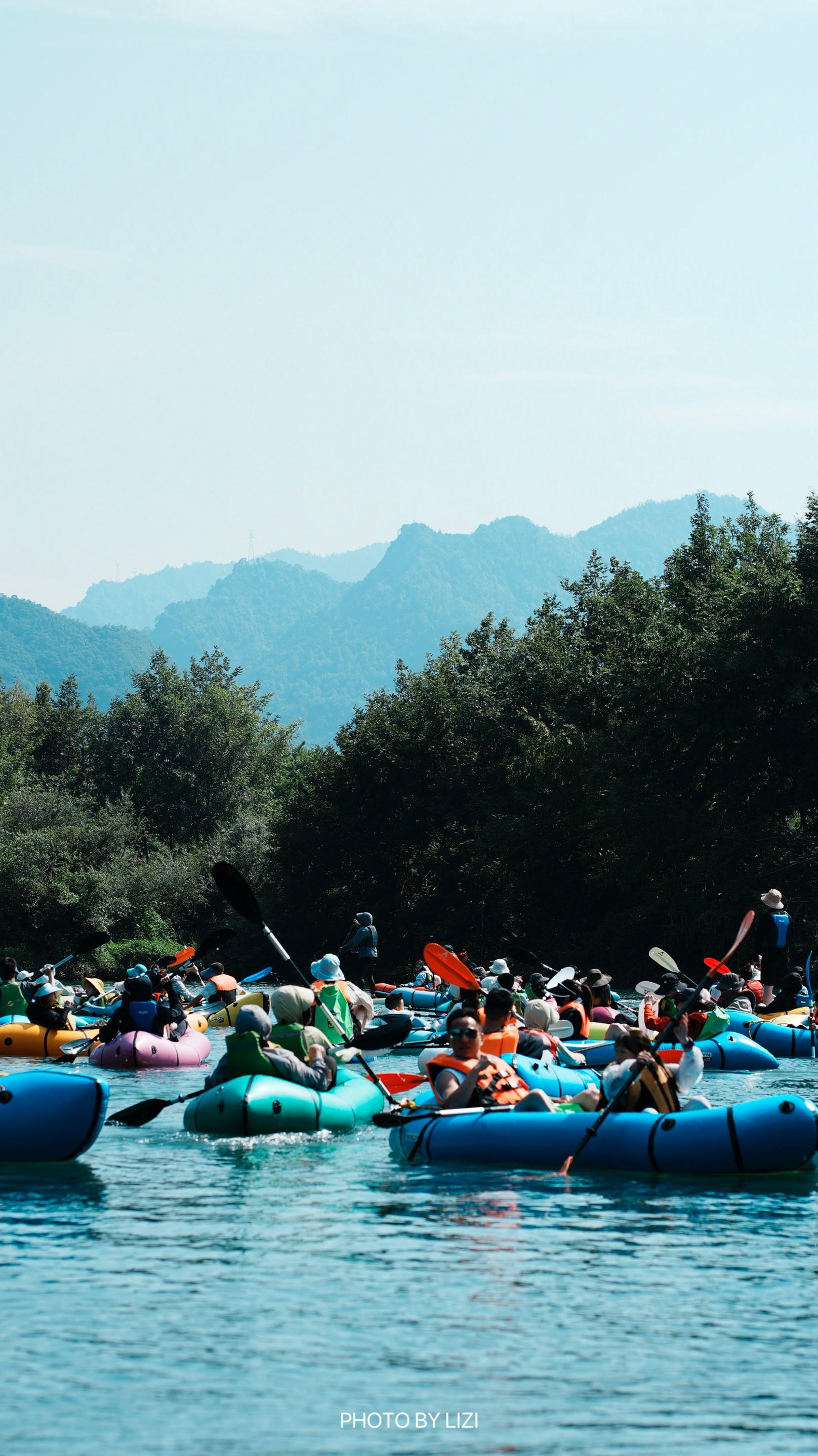 5月31日,轻氧户外俱乐部与Mercury探野俱乐部各自组织的漂流活动在楠溪江面同一段河道“狭路相逢”,上百只背包船、桨板交织成绵延数十米的“船龙”,场面蔚为壮观。游客们笑称:“这辈子第一次在江里‘堵船’,比陆上堵车有趣多了!”