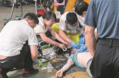 七八分钟过后,患者的面色逐渐转红。很快120医护人员也赶到了。“开放静脉通道!”“准备除颤!”就在120医护人员接手后,她还在一旁协助用药、插管等操作,患者生命体征慢慢有了好转。晚9时15分,患者被抬上救护车送往医院。此时,朱茜发现自己的膝盖已是一团淤血,手机里还有一条孩子发来的未读消息……